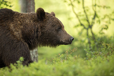 In the forest hides it is especially important to be ready to photograph at any given time because the silently moving bears can appear suddenly. The forest offers more sheltered surroundings to photograph, so bears often come closer to the hides than in open areas.