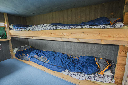 All hides have a chair, bed, mattress, sleeping bag, duvet, pillow, toilet-pail and paper, 3/8” mounting screws for tripod head, and a heater when needed in April.