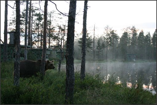 As the pond is relatively small, reflections are common in calm weather. As the bears move along the bank, close to the waters edge, it is possible to make some beautiful images with the bear and its reflection.