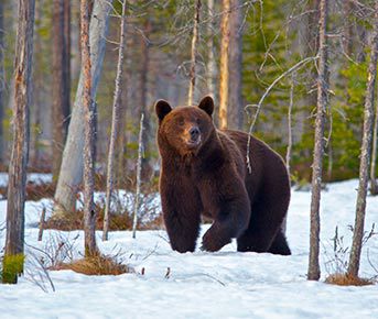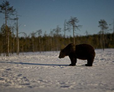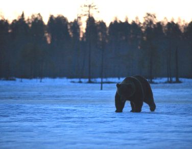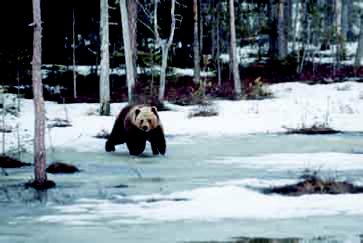 Due to the various lakes and ponds, and the quickly changing climate, during April bears can be seen on ice, snow and wetland.