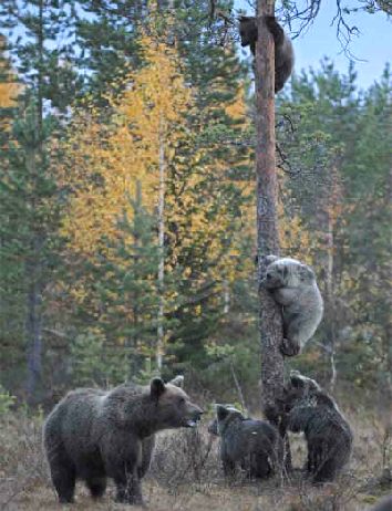 Male bears are still prevalent in the area which increases the risk dramatically for the cubs. They are often kept near trees and dense foliage by their mothers in case of an emergency. Due to the presence of the male predators the cubs frequently climb trees in the area.